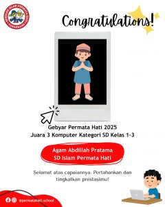 Agam Abdillah Pratama – Juara 3 Komputer kategori SD Kelas 1-3 pada Gebyar Permata Hati 2025