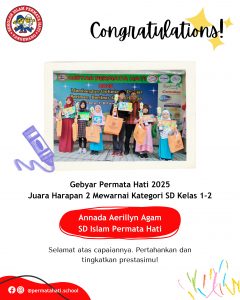 Siswi SD Islam Permata Hati yang telah mendapatkan Juara Harapan 2 Mewarnai kategori C SD Kelas 1-2 pada Gebyar Permata Hati 2025.