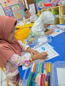 Selain melatih kreativitas, kegiatan ini juga membantu mereka memahami instruksi dalam Bahasa Inggris dengan cara yang menyenangkan.