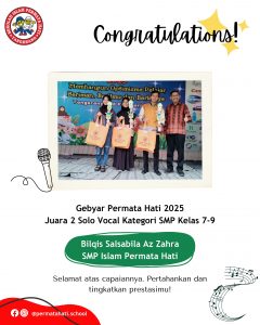 Bilqis Salsabila Az Zahra – Juara 2 Solo Vocal SMP Kelas 7-9 pada Gebyar Permata Hati 2025