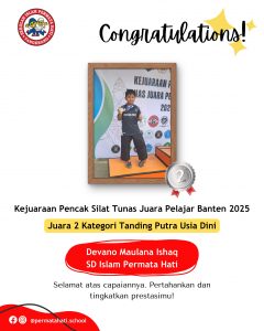 Siswa SD Islam Permata Hati yang mendapatkan Juara 2 Kategori Tanding Putra Usia Dini pada Kejuaraan Pencak Silat Tunas Juara Pelajar Banten 2025.