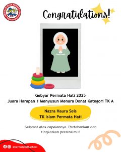 Nazra Haura Seis – Juara Harapan 1 Menyusun Menara Donat Kategori TK A pada Gebyar Permata Hati 2025