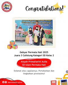 Aisyah Primaharini Aulia – Juara 3 Calistung kategori B SD Kelas 2 pada Gebyar Permata Hati 2025