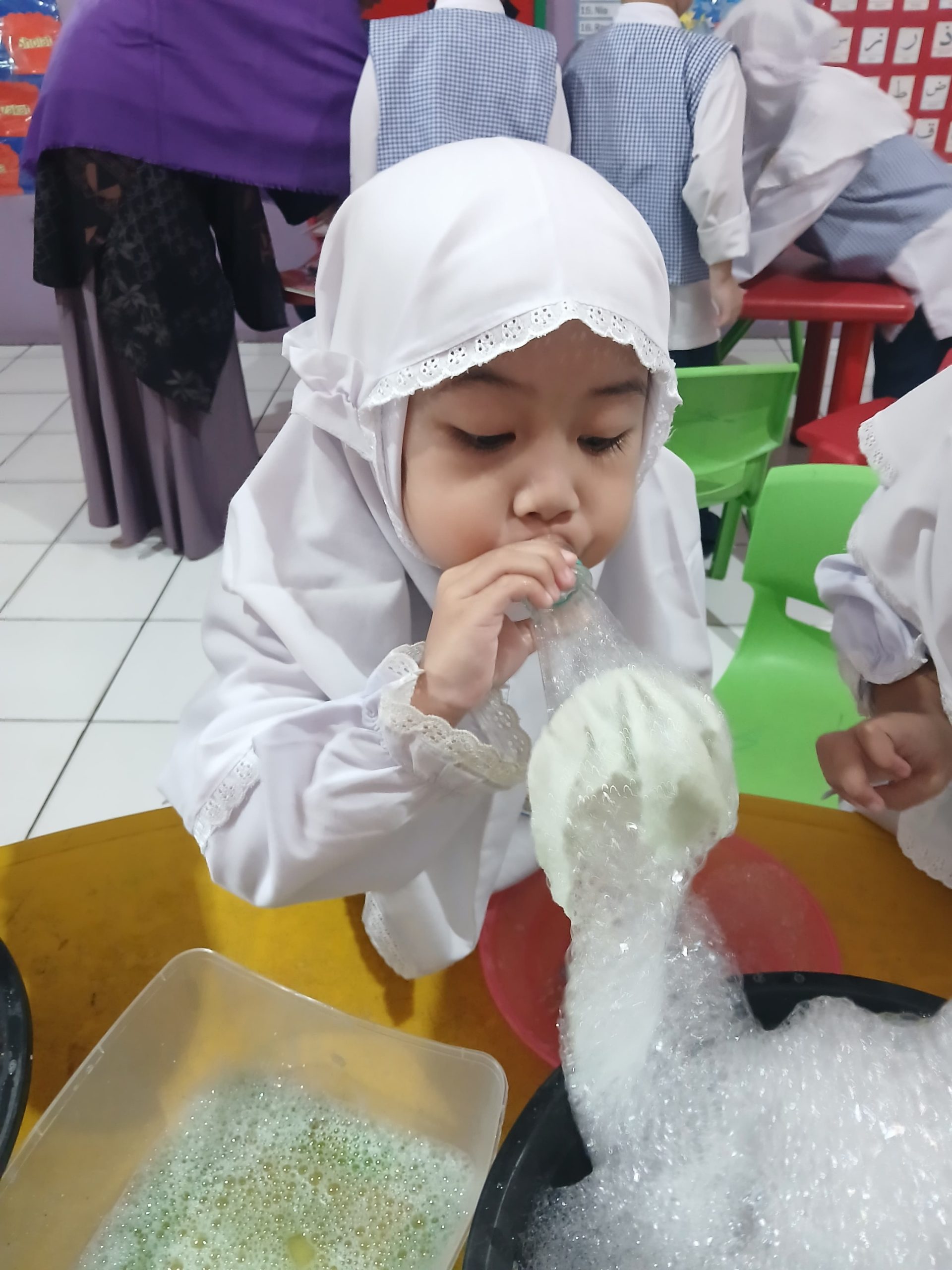 Assalāmu ‘alaikum Adik-adik TK B Permata Hati sedang seru-seruan di sentra sains dengan eksperimen membuat gelembung sabun! Mereka belajar bagaimana…
