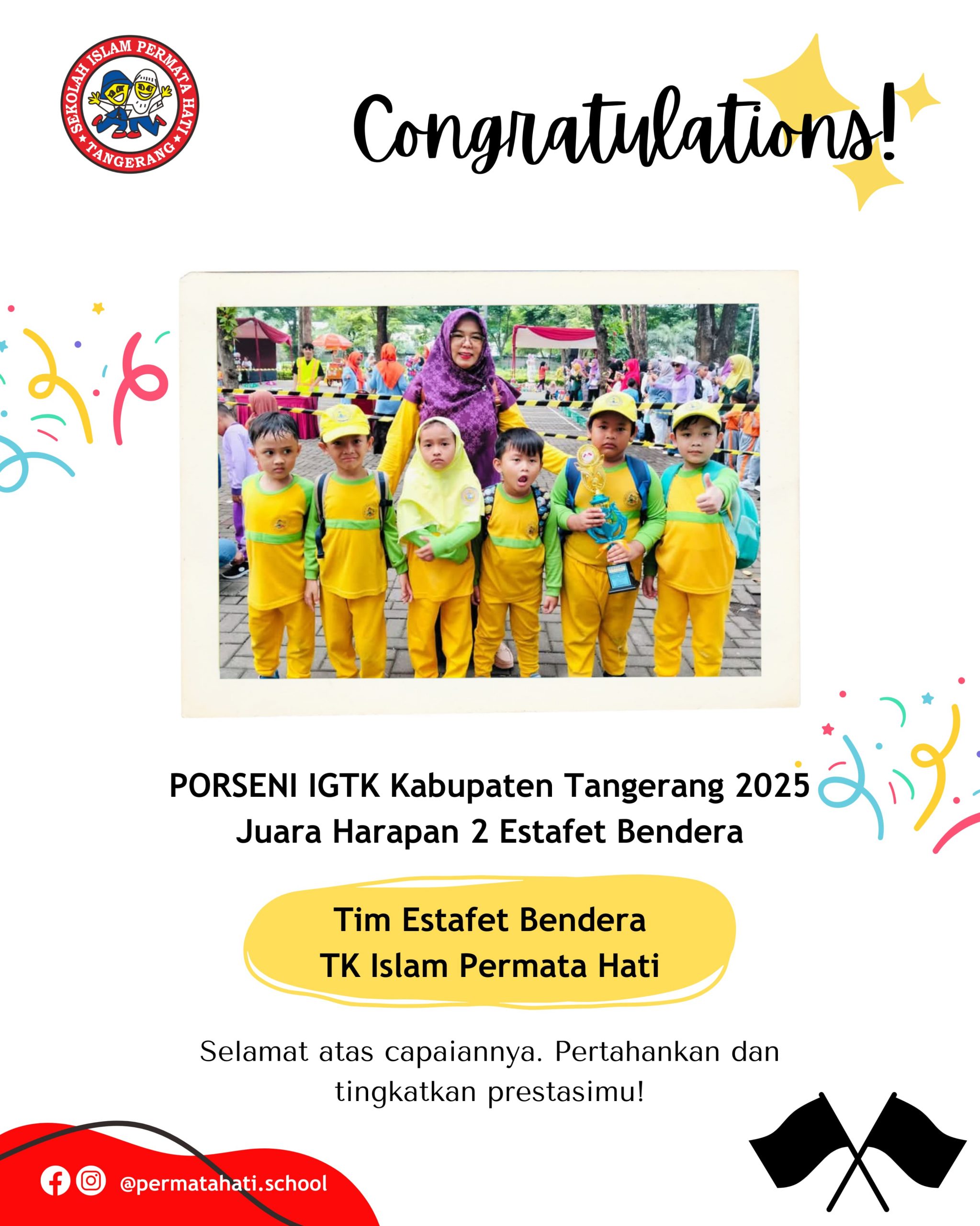 Assalāmu ‘alaikum Selamat kepada Tim Estafet Bendera TK Islam Permata Hati: – Abidzar Abdul Malik Ibraheem – Almeiro Ghaisan –…