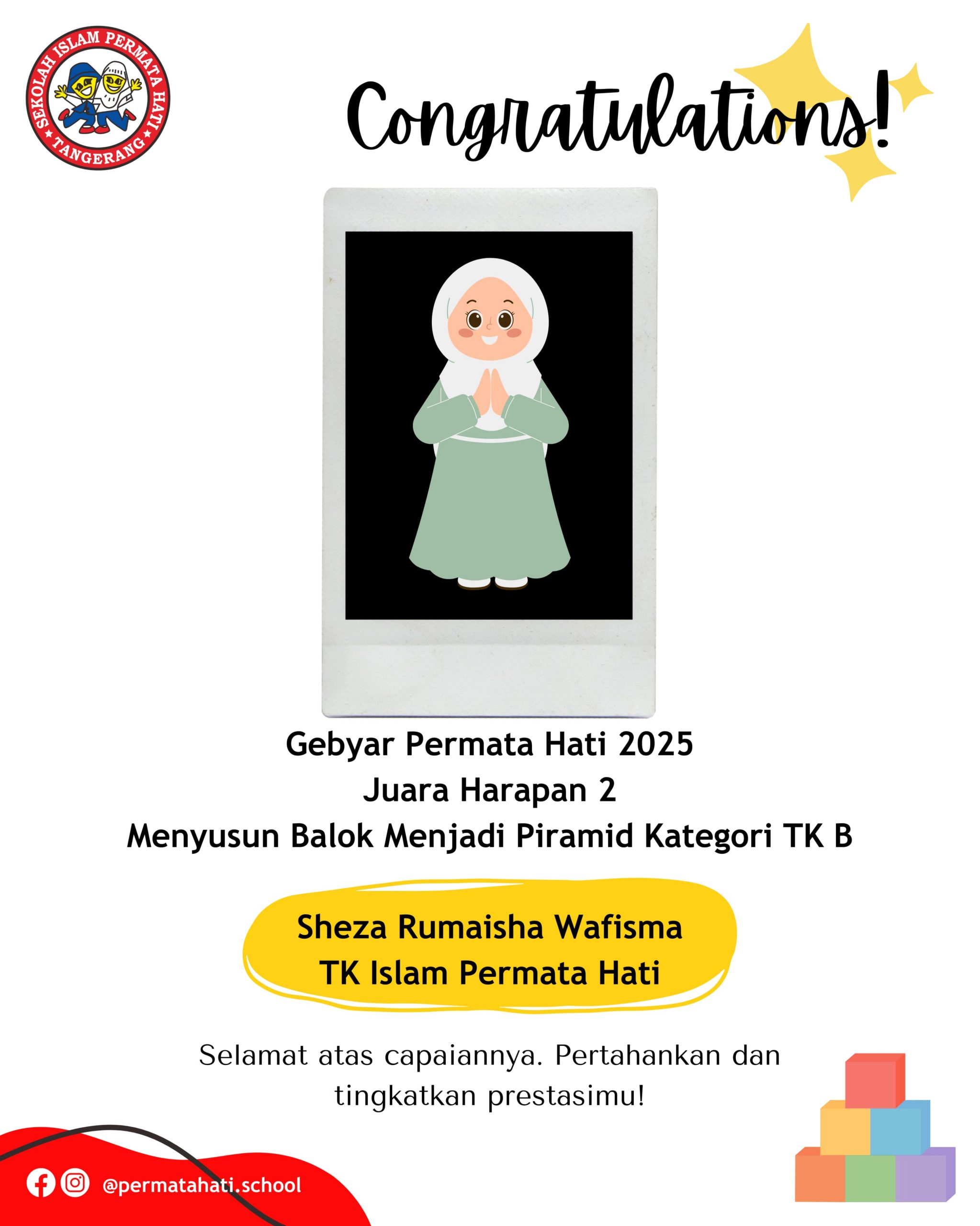 Sheza Rumaisha Wafiisma – Juara Harapan 2 Menyusun Balok Menjadi Piramid Kategori TK B pada Gebyar Permata Hati 2025