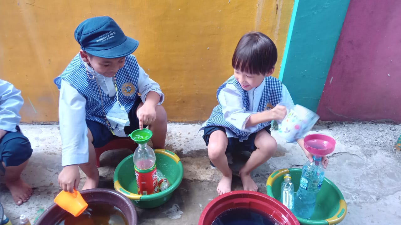 Assalāmu ‘alaikum Adik-adik TK B Permata Hati sedang belajar mengisi botol dengan air berwarna di sentra SAINS. Kegiatan ini dapat…