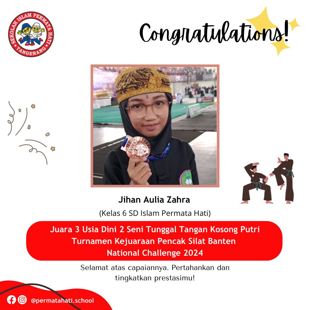 Assalāmu ‘alaikum Selamat kepada Jihan Aulia Zahra, siswi kelas 6 SD Islam Permata Hati yang mendapatkan juara 3 usia dini…