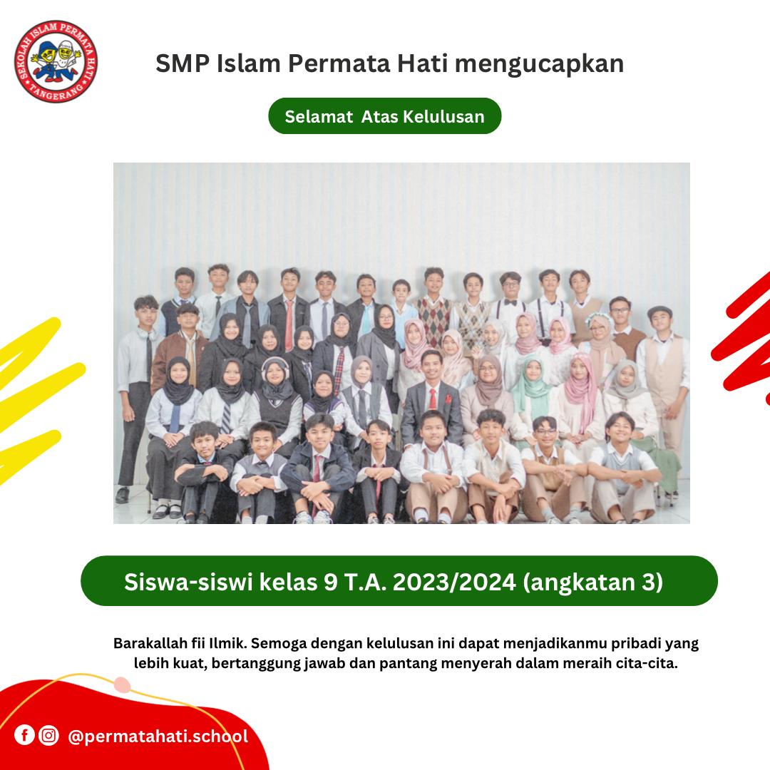 Assalāmu ‘alaikum 😊 SMP Islam Permata Hati mengucapkan “Selamat atas kelulusan siswa-siswi kelas 9 T.A 2023/2024 (angkatan 3)”. Barakallah fii ‘ilmik. Semoga…