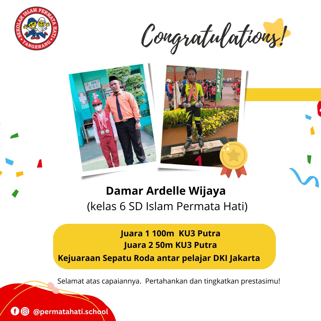 Assalāmu ‘alaikum Selamat kepada Damar Ardelle Wijaya (kelas 6 SD Islam Permata Hati) yang telah menjadi juara: Juara 1…
