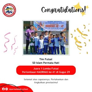 Selamat kepada Tim Futsal SD Islam Permata Hati yang mendapatkan juara 1 lomba futsal pada “Perlombaan HAORNAS Ke-41 di Gugus 29 Kec. Kelapa Dua, Kab. Tangerang, 11 September 2024.